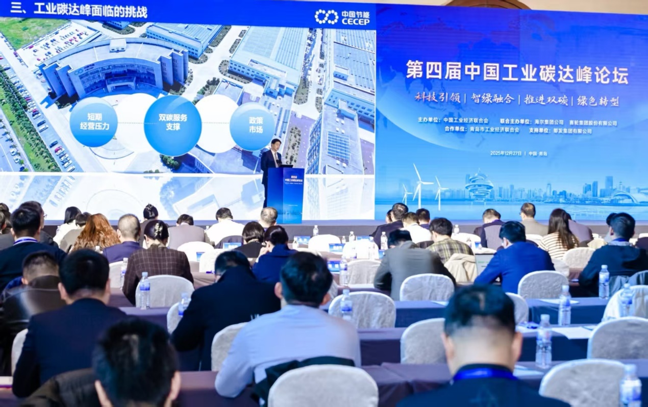 12月27日,中国工业经济联合会在青岛举办第四届中国工业碳达峰论坛,中国节能入选2025中国工业碳达峰“领跑者”企业名单。中国节能党委常委、副总经理杜乐受邀出席论坛并作主题演讲。