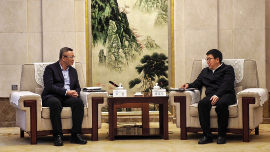 11月4日,集团公司党委书记、董事长廖家生在集团总部会见广西壮族自治区贺州市富川瑶族自治县县委书记尹哲,双方围绕助力乡村振兴、加强节能环保领域合作展开深入交流。集团公司党委副书记刘大军参加会见。