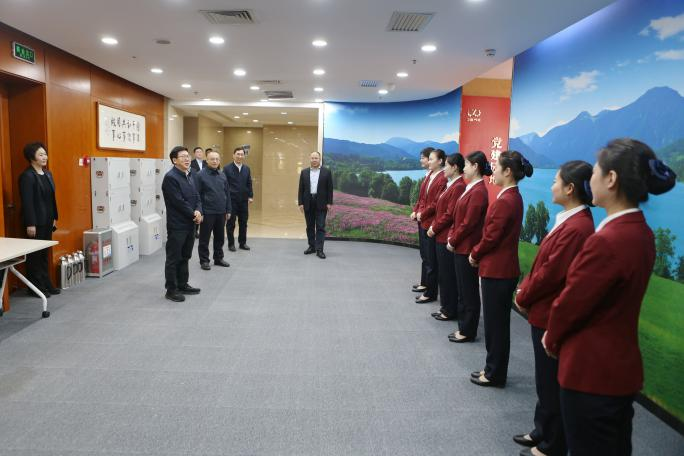 廖家生先后来到大厦二楼会议中心、一楼大厅和餐厅,与会服、安保、保洁、餐饮等单位工作人员亲切交谈,对大家一年来的热情服务和辛勤劳动表示衷心感谢,向大家致以美好的新春祝福。在中控室、配电室以及燃气锅炉房等区域,廖家生亲切看望慰问正在值班值守的工作人员,认真听取介绍,仔细询问各类设施设备的技术参数指标,深入了解设备的日常运行状态、检查检修周期及具体落实情况,叮嘱大家时刻绷紧安全这根弦,进一步强化责任意识,加强巡查巡检频次,严格遵守各项操作规程,确保各类设施设备安全稳定运行。他指出,各级领导干部要关心关爱一线工作人员,用心用情解决一线人员的实际需求,确保全体人员度过一个平安、祥和、欢乐的新春佳节。