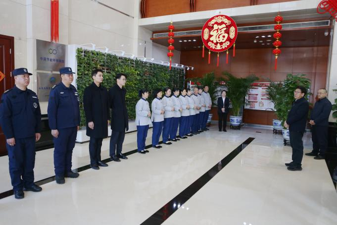 2月14日,在新春佳节即将到来之际,集团公司党委书记、董事长廖家生深入节能大厦各区域,亲切看望慰问坚守岗位的大厦服务保障人员,向大家致以诚挚的新春问候,并就节日期间设施设备安全运行情况进行实地检查。集团公司党委副书记、工会主席刘大军陪同。