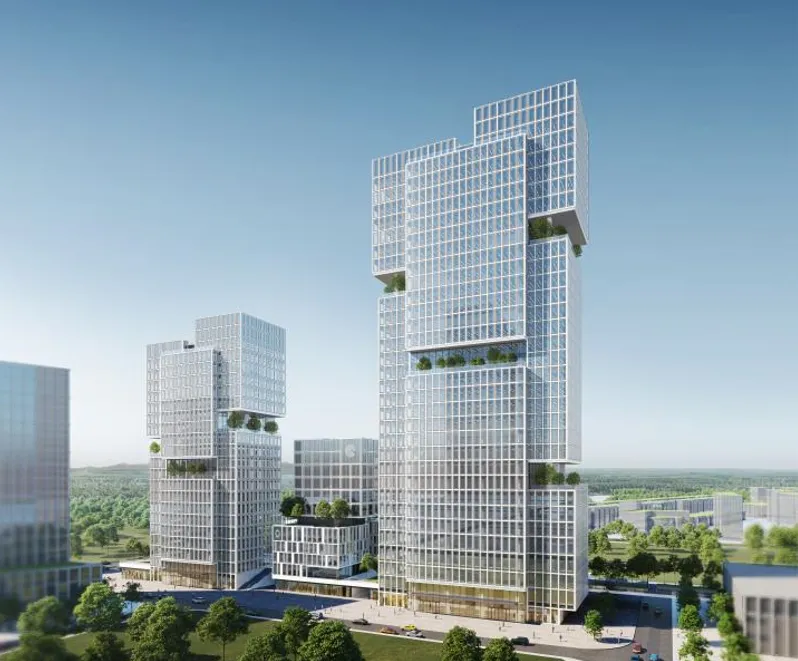 该项目位于深圳湾超级总部基地,总建筑面积15万平方米,一期项目由6栋单元楼、裙房及三层地下室组成。其中,地上是集办公、商业、通信机楼、文化设施于一体的城市综合体,建筑高度146.9米;地下空间为商业、办公配套、车库及设备用房。