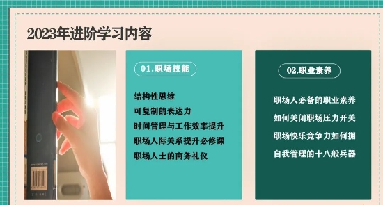 ? ? 新力量,代表成长、希望和无限可能。镇江公司此次开展新力量训练,一方面为了帮助公司各部门新力量更好地融入公司、融入团队,另一方面通过学习交流,能帮助他们提升职场软技能,打好职场基本功。 ? ? 为进一步明确本次团建的内容和要求,镇江公司人力行政部首先介绍了2023年进阶学习计划。本次进阶学习内容聚焦职场技能、职业素养两部分,学习模式以线上学习、阶段性派课形式开展,并通过群组管理、学测结合、积分管理等模式帮助大家更好地固化和运用知识,进一步提升职场软技能,增强核心竞争力。