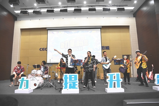 青春的脚步,快如疾风 绽放的笑容,灿若春花 青春的旋律伴随着明媚的阳光 凝结成一股充满朝气的青春力量 奋斗是青春最亮丽的底色 行动是青年最有效的磨砺 有责任有担当 青春才会闪光 ? ? 2023年是集团公司“能力提升年”,是太阳能公司明确提出“三不减、四提高”工作要求的奋进之年,也是镇江公司各项工作再上新台阶的蜕变之年。为帮助公司新生代力量提升工作能力和职场竞争力,5月4日,在五四青年节当天,镇江公司启动2023年新力量训练营,开展巅峰乐团音乐团建。镇江公司领导班子、相关部门负责人、各部门新力量代表共100余人参加团建。