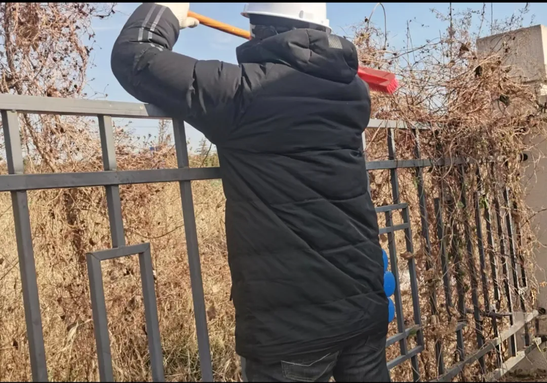 排查整治,筑牢安全“防护网” 针对冬季气候特点,团队将消防与环境安全列为工作重点。一方面,彻底清理场区内的枯枝杂草等易燃物,严格检查并确保消防器材完好有效;另一方面,全面疏通排水沟渠,防止积水结冰侵害设备基础,从多维度筑牢电站稳定运行的安全屏障。